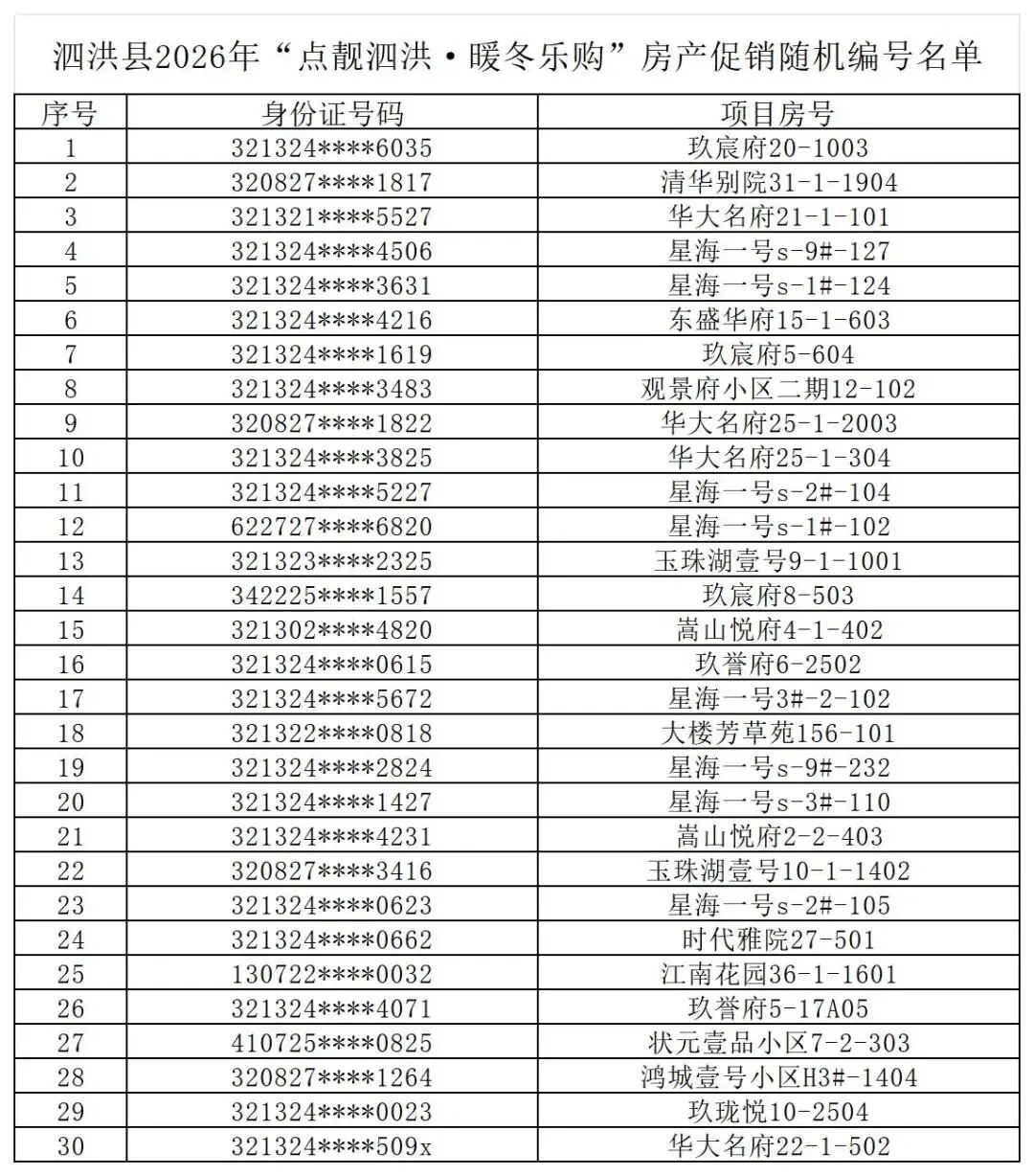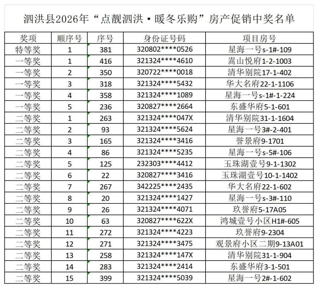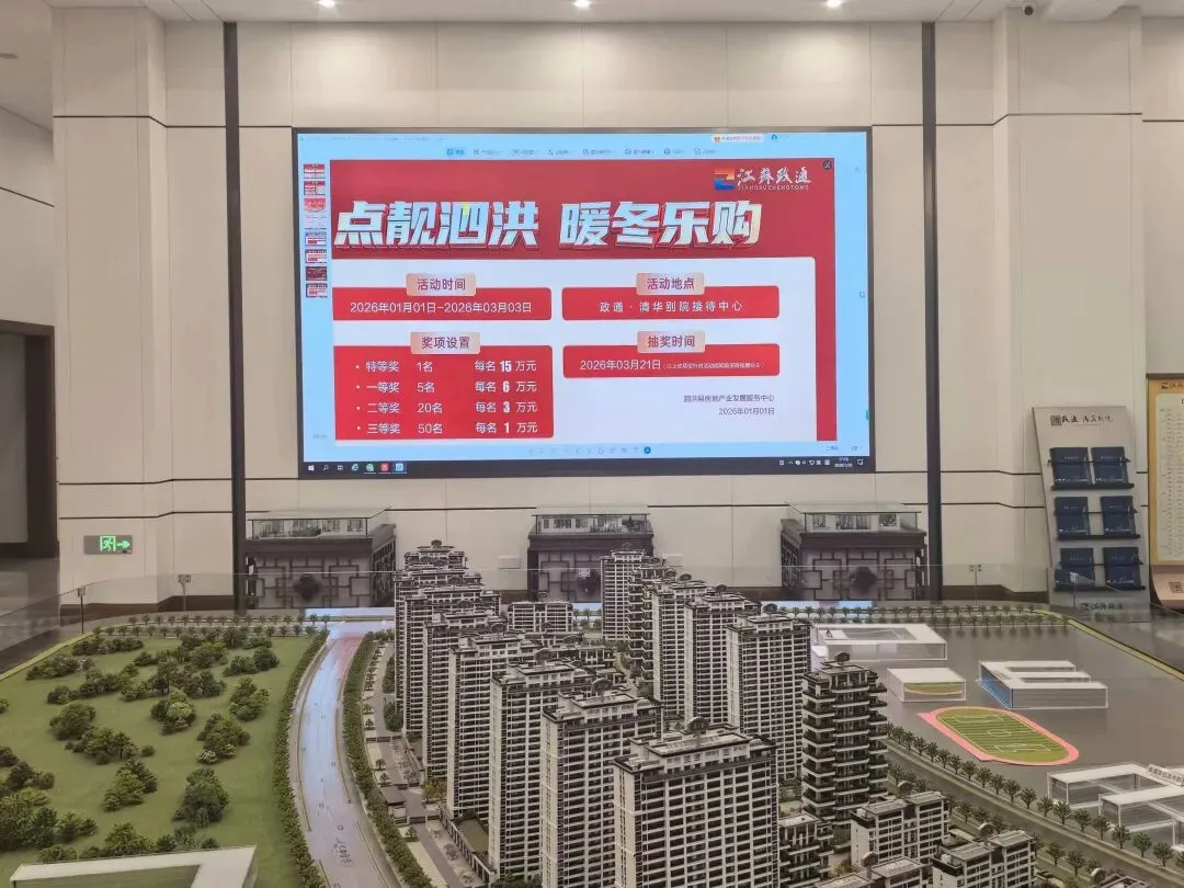 为进一步激发市场活力、提振消费信心,促进房地产市场平稳健康发展,我县于 2026 年 3 月 21 日 15:30,在泗洪县开元报告厅举办 2026 年 “点靓泗洪・暖冬乐购” 房产促销抽奖活动。本次活动在公证处工作人员及购房群众共同见证下顺利举行、圆满结束。