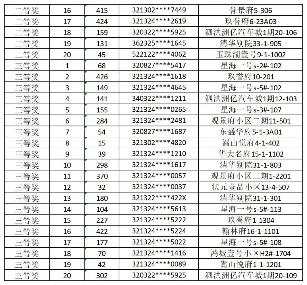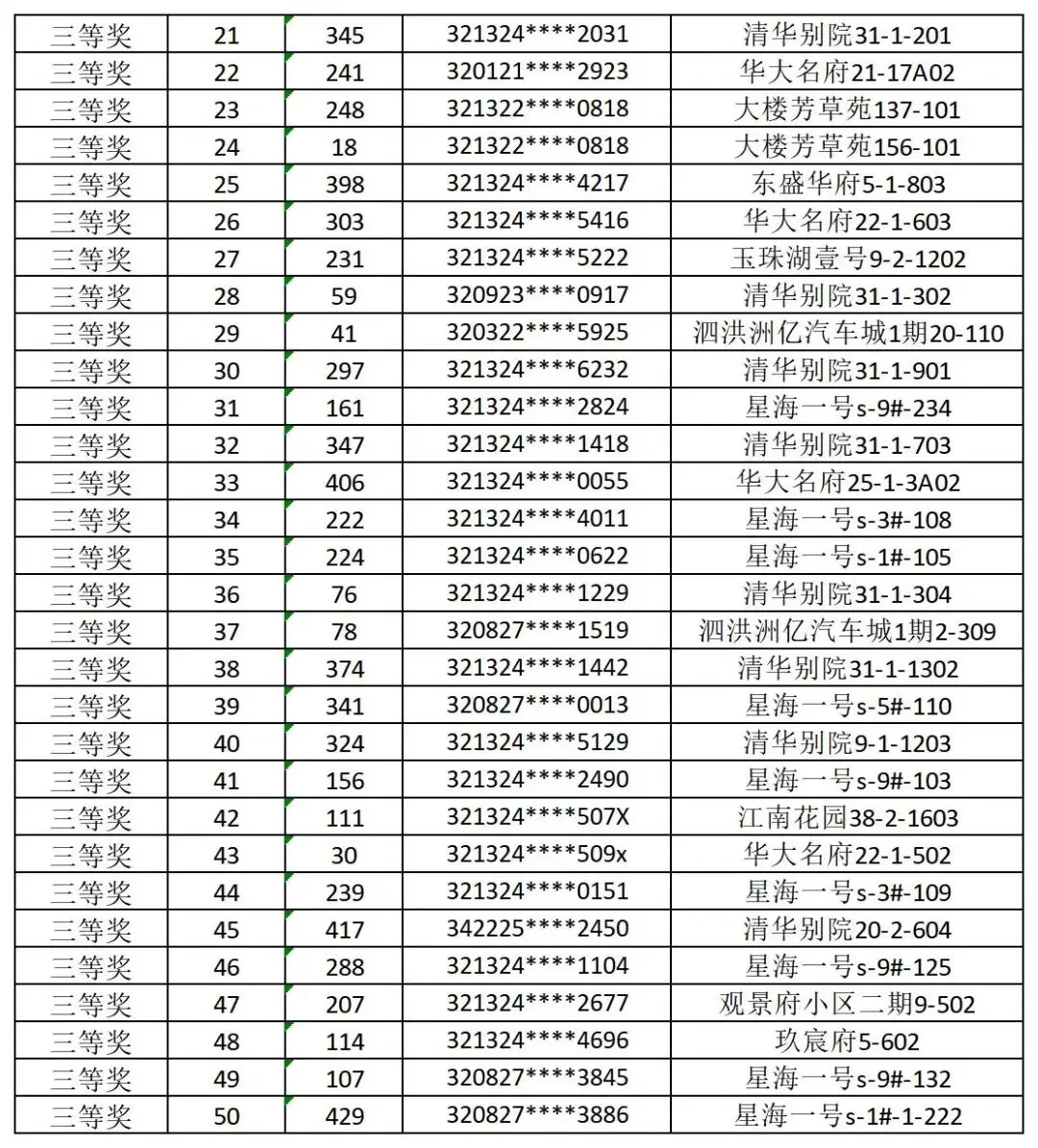 本次抽奖共产生特等奖1名,一等奖5名,二等奖20名,三等奖50名,现将抽奖现场系统随机打乱生成的抽奖名单及中奖名单予以公示,公示3个工作日无异议的,进入奖金拨付流程。
