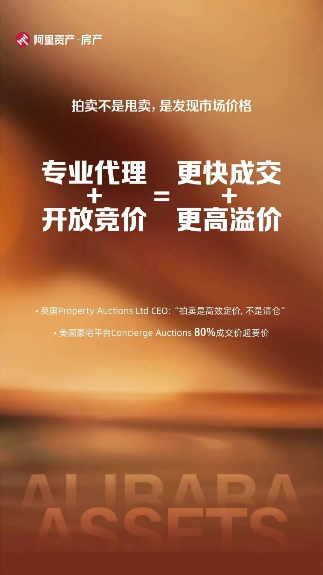 海报特别引用了英国Property Auctions Ltd CEO的洞见:“拍卖是高效定价,不是清仓。” 这句话精准地剥离了人们对拍卖的陈旧认知。