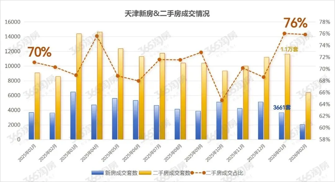 1月二手房成交占比又提高到76%。