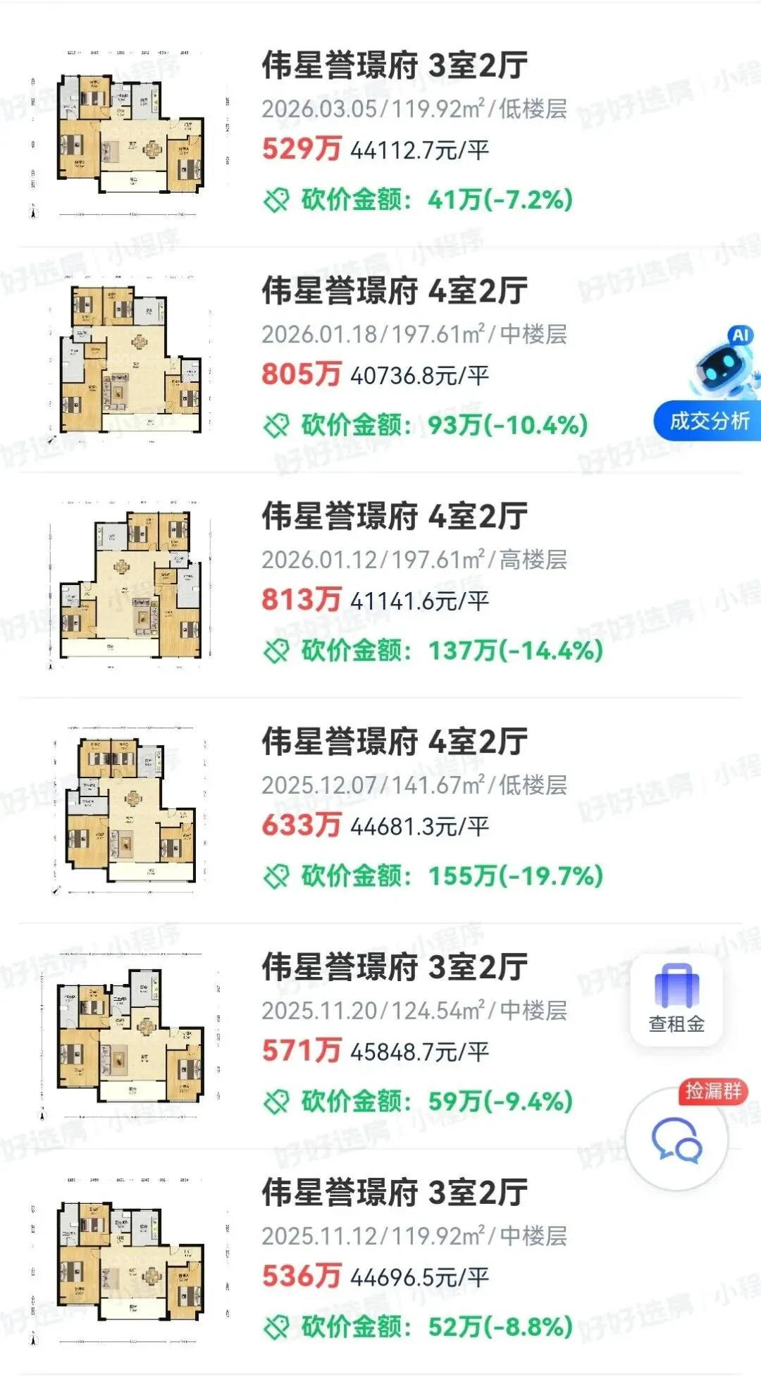 我们看看价格:3月南部新城成交价普遍在3万/㎡以上,伟星誉璟府交付后持续4万+/㎡成交,3月9日再次成交了一套4.56 万/㎡的房源,可以说是抗跌最强的区域。