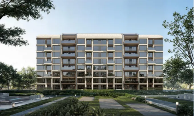 这是区域内首个采用首层石材+玻璃+仿石铝板、陶板+金属格栅的立面组合项目,东西南北四方位全三玻两腔系统窗。