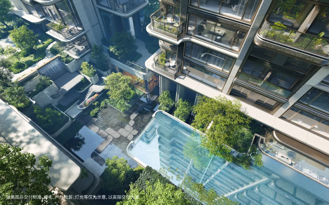 从效果图上看,项目设计顶部为坡面,能够看到小区内部有大面积水景打造,北侧临近秦淮新河,居住非常舒适。