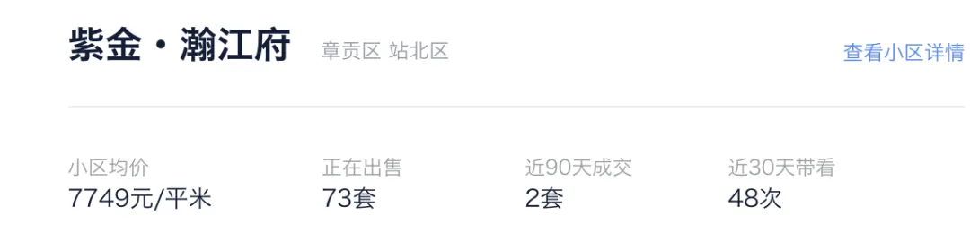 ▲ 赣州章贡区紫金瀚江府在贝壳有73套房源在售,目前二手价格基本在五六千一平