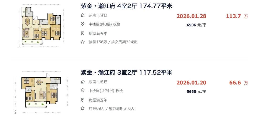 ▲ 赣州章贡区紫金瀚江府,项目2019年1月开盘,延期至2023年5月交房,目前二手行情下滑很明显