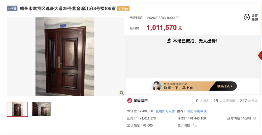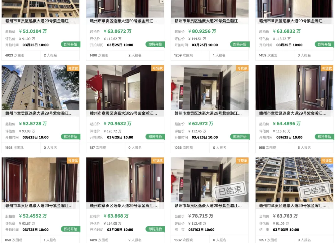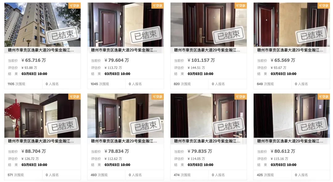 ▲ 赣州章贡区紫金瀚江府10套住宅3月3日曾流拍过一次