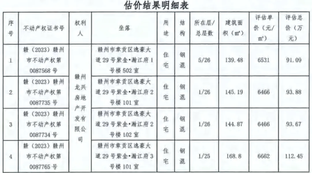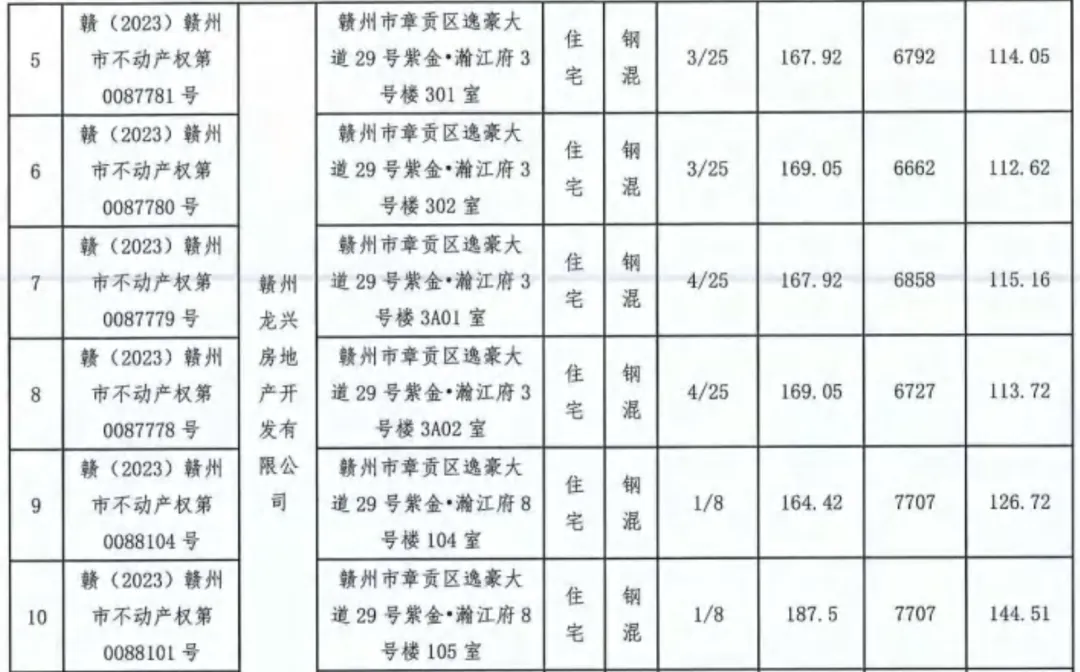 ▲ 赣州章贡区紫金瀚江府10套住宅评估信息
