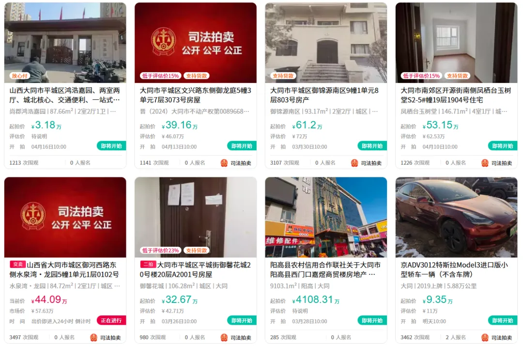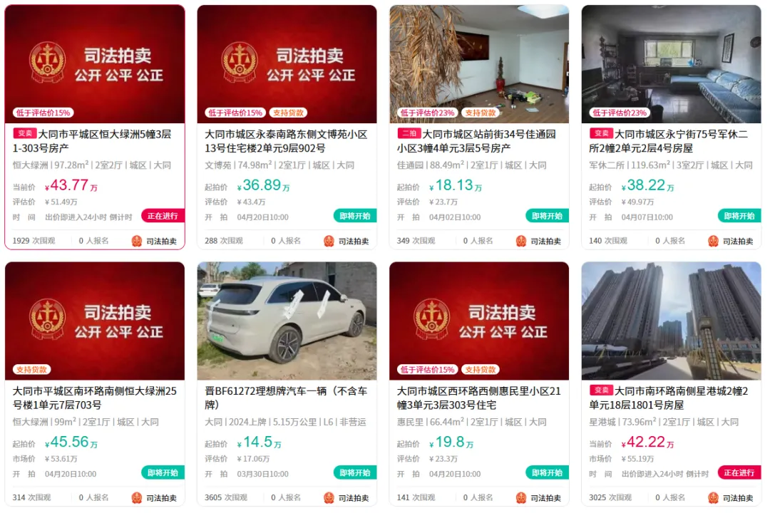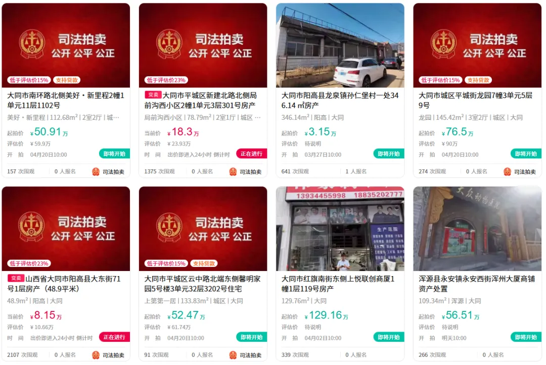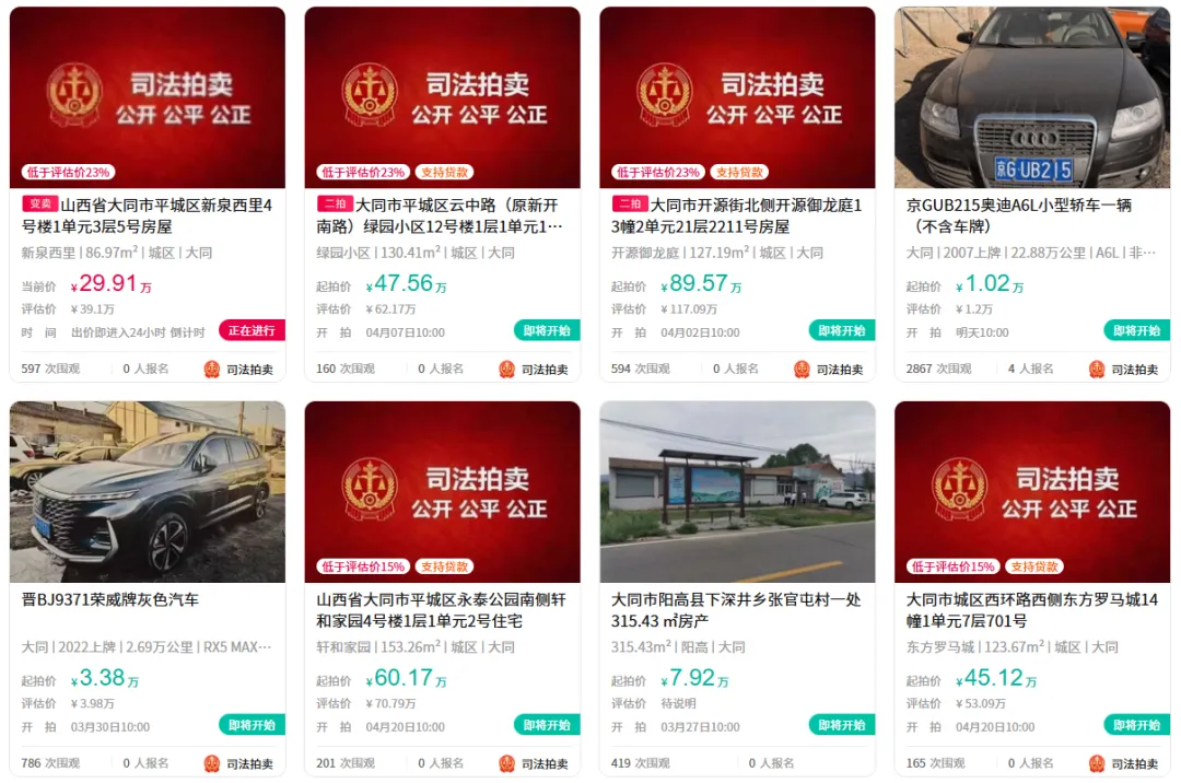 >大同多处房产、车辆拍卖
