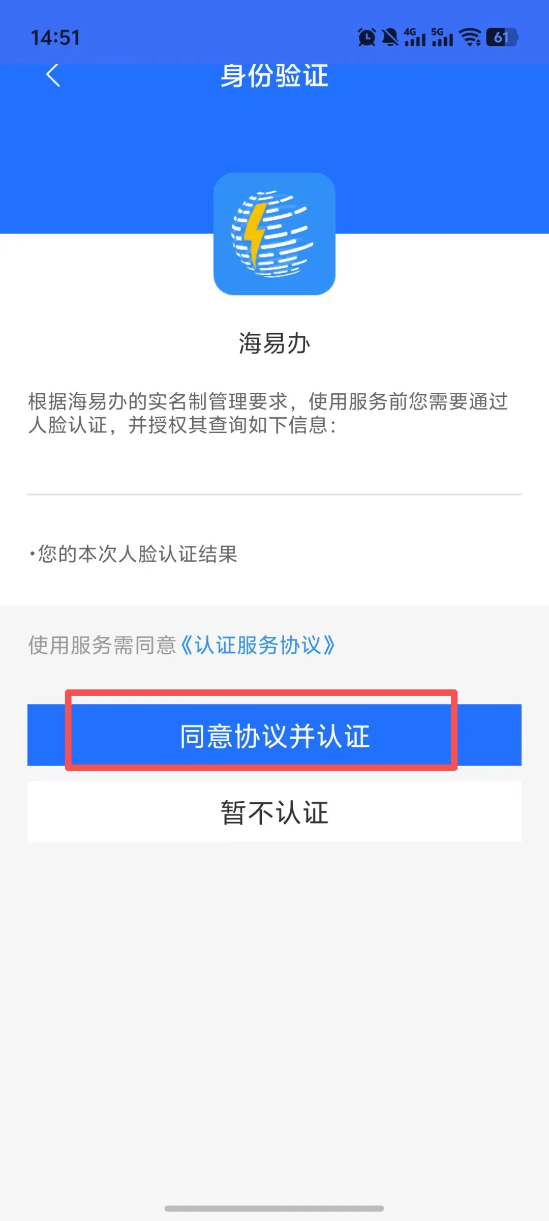 2、进入后进行身份验证,进行人脸识别后,按照页面提示进行操作即可。