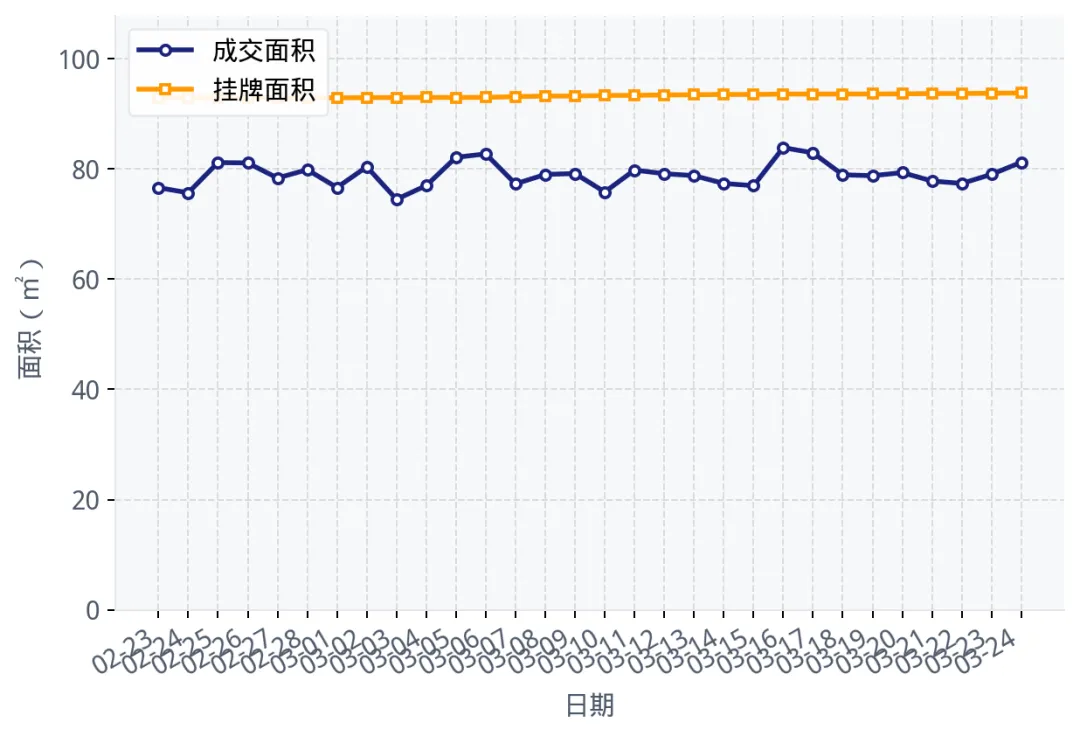 成交平均面积与挂牌平均面积对比趋势