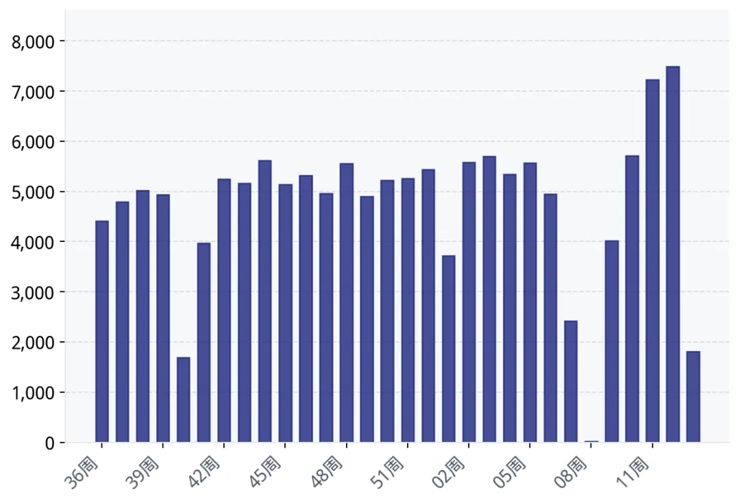 周度成交套数趋势(近30周)