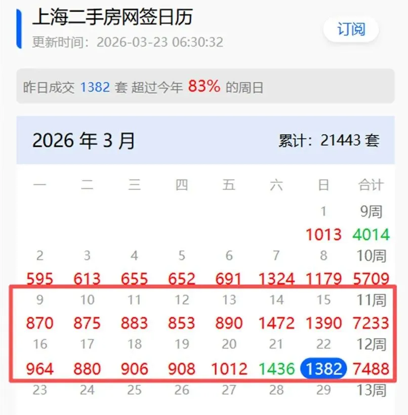 网签数据多少有点滞后,如果看实时成交,这种热度会更明显。