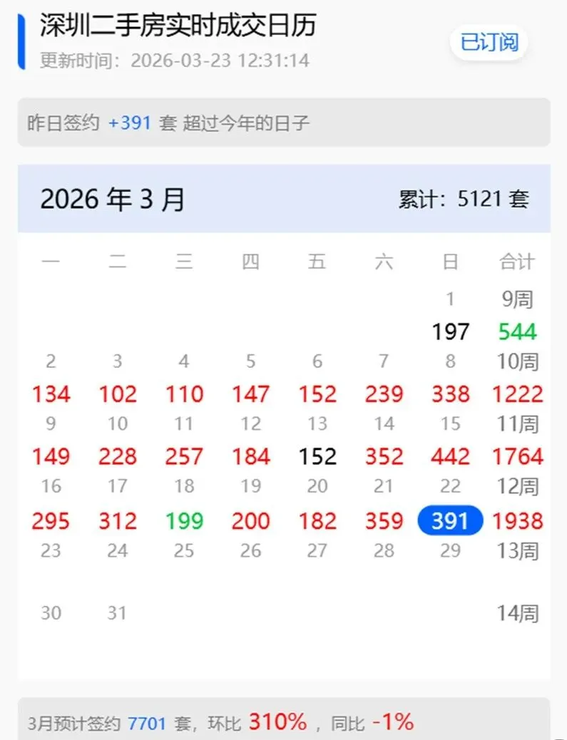 截至3月22日,深圳卖了5121套,预计全月冲击8000套。