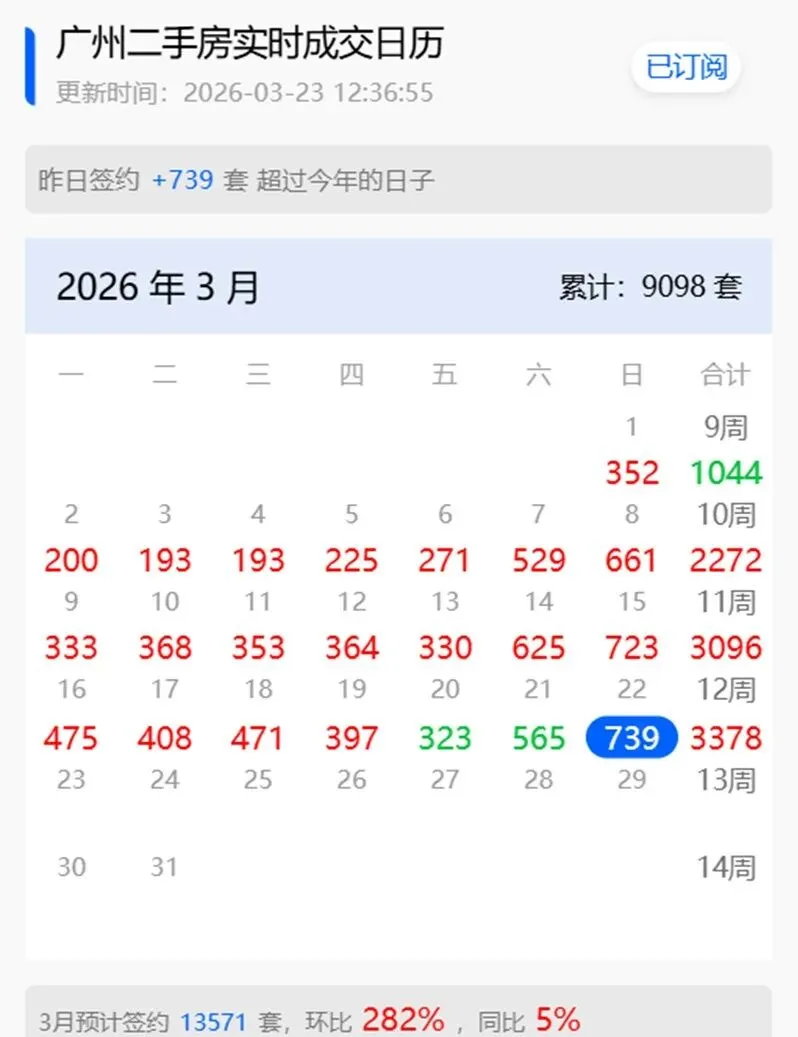 广州预计3月实时成交1.4万套。
