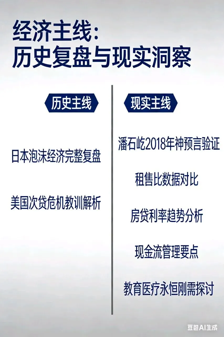 一条是历史主线——日本泡沫经济、美国次贷危机的完整复盘与教训;
