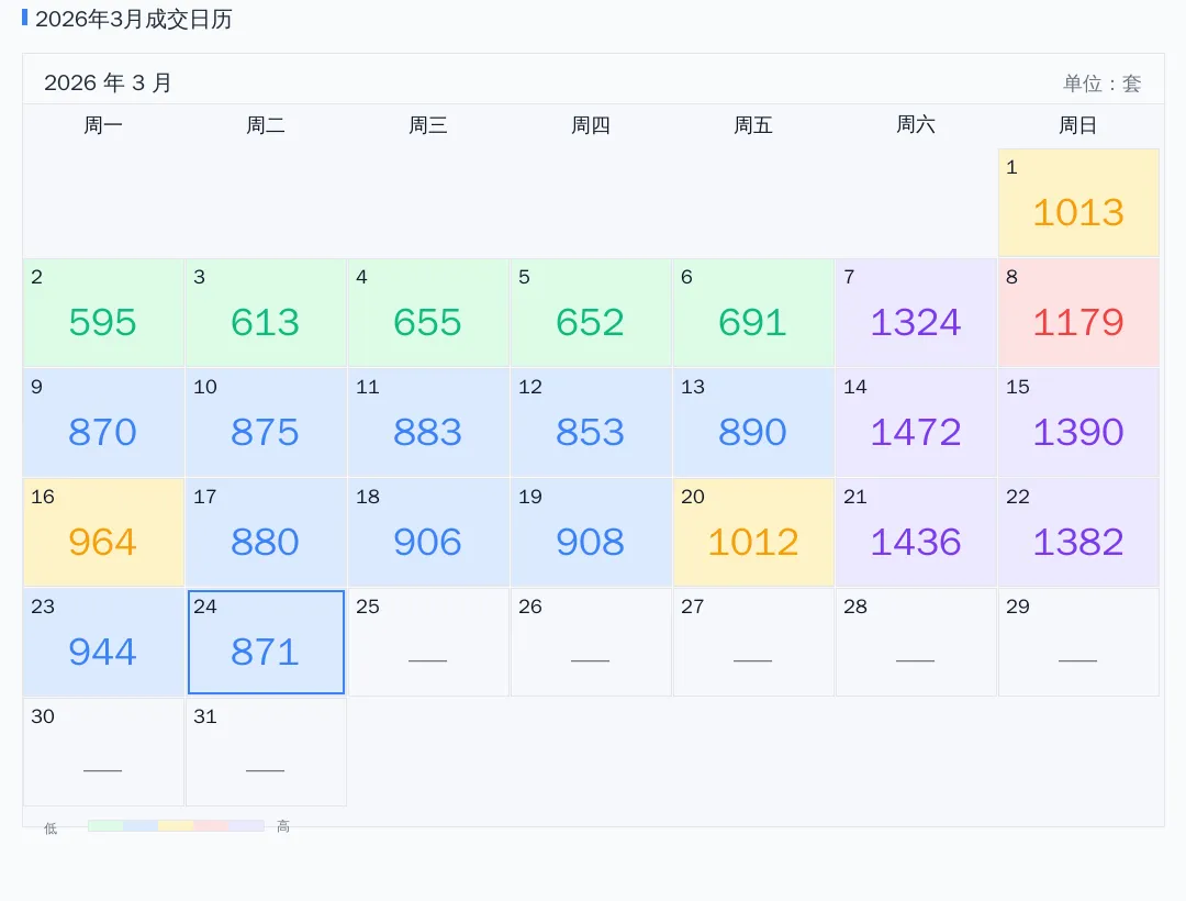 2026年03月成交日历