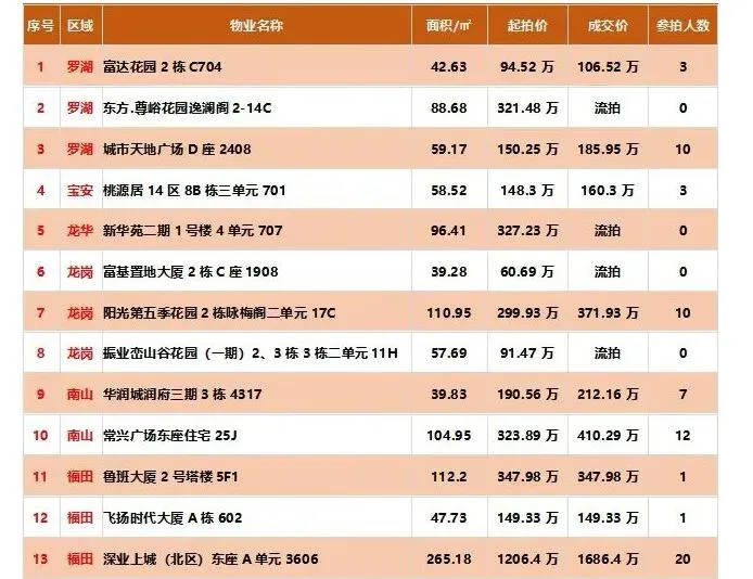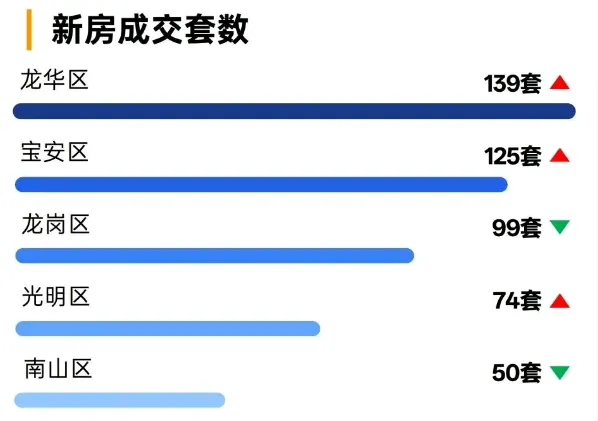 区域成交排名:①宝安区99套;②龙华区77套;③龙岗区53套
