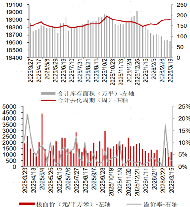 2、土地溢价回落。上周(3.9-3.15),100大中城市供应土地1870.8万平方米,同比-11%;供应均价887元/ 平方米,同比-37.2%;成交土地1961.8万平方米,同比-26.3%;土地成交金 额 231.1亿元,同比-22.8%。上周土地成交楼面价1178元,溢价率2.4%。