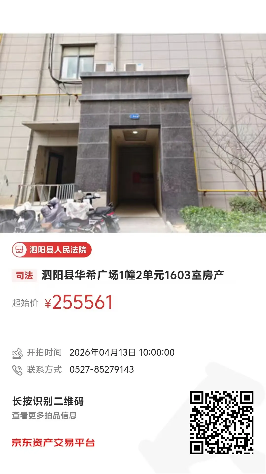 拍品信息:泗阳县华希广场1幢2单元1603室房产(第一次拍卖)