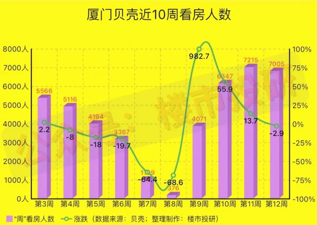 (1)周“看房人数”7005人,环比上周下降约2.9%;
