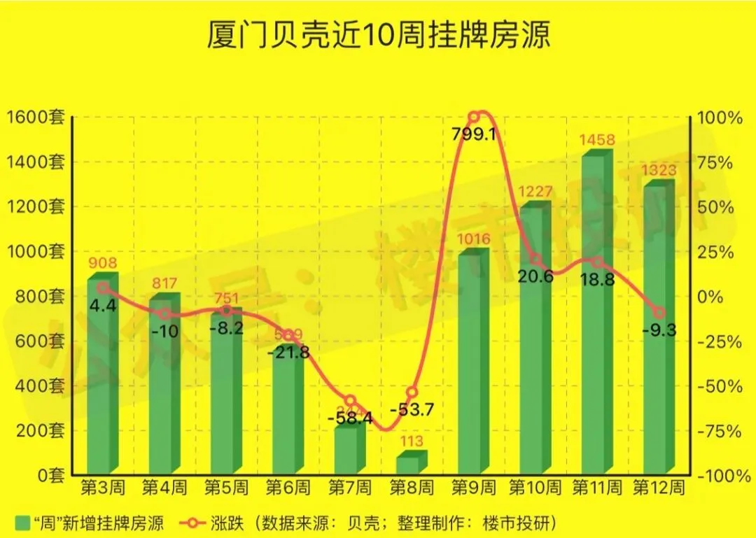 (3)周“新增挂牌房源”1323套,环比上周下降约9.3%;