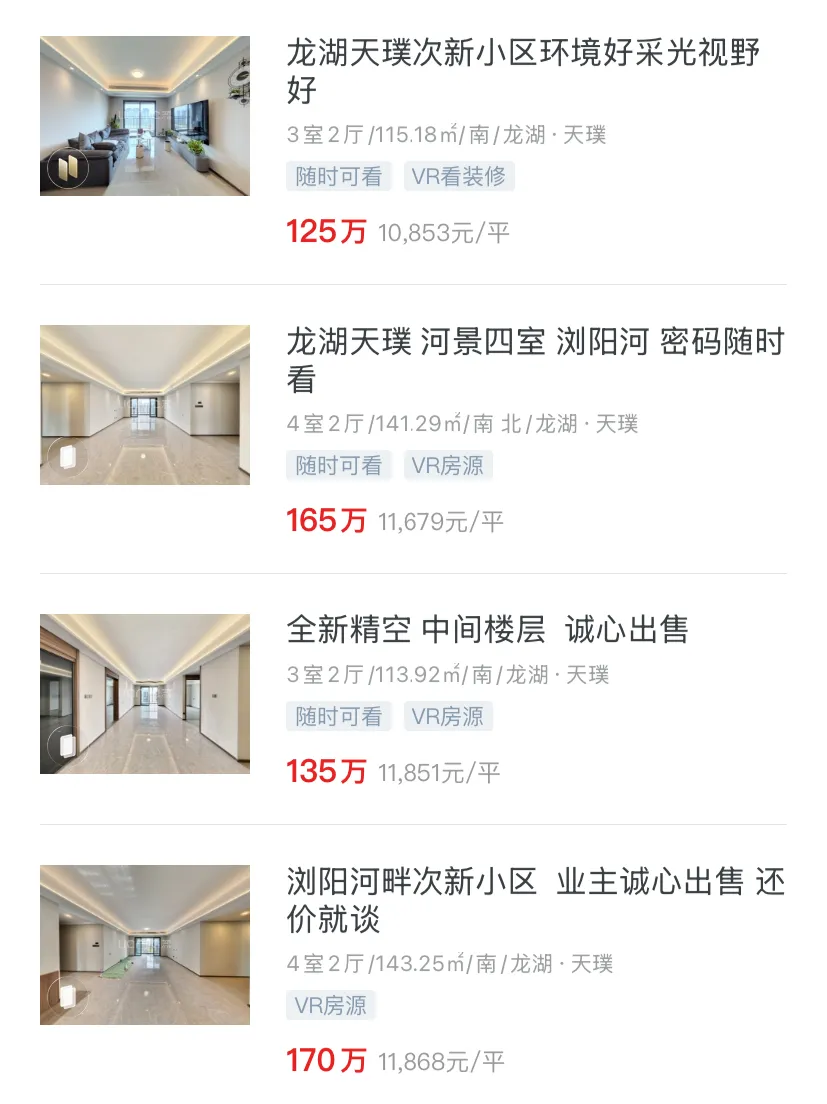 我发现,在长沙的各个次新盘中,龙湖天璞在售的二手房特别少。