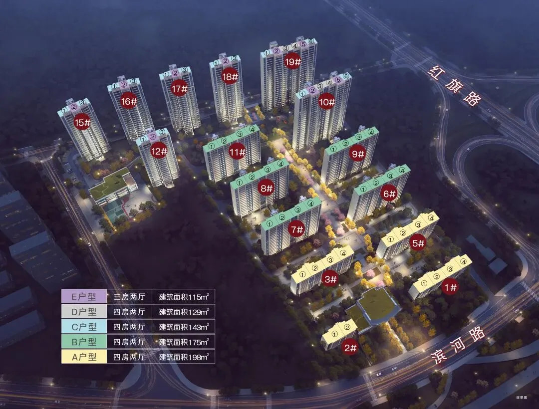 5栋建面约198㎡洋房,均价约14500-15500元/㎡。