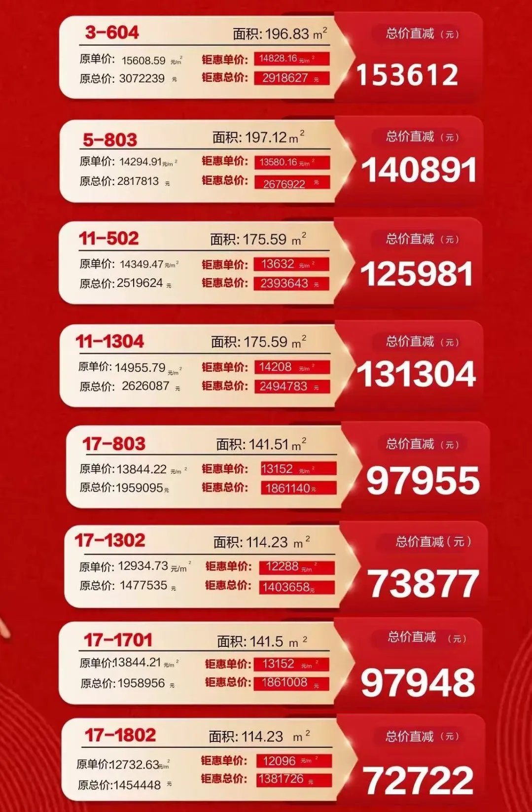 项目后来降了不少价,比如2025年6月,在售的15栋、16栋、17栋(高层),建面约干141㎡住宅,折后均价约12000元/㎡。