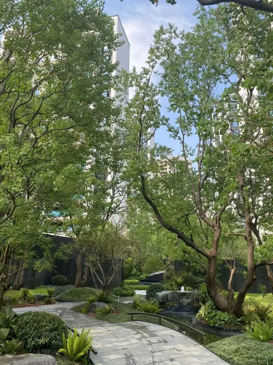 花树夹道,再增了几分惬意;“引”自然水韵入园,镜面水景串联着置石跌水,一动一静,颇有山涧「小桥流水」的意境,让归家亦如归园。