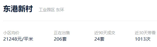 根据贝壳信息显示,东港新村目前206套挂牌出售,挂牌均价21248元/平。