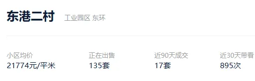 根据贝壳信息显示,东港二村目前135套挂牌出售,挂牌均价21774元/平。