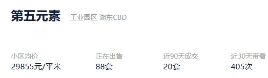根据贝壳信息显示,第五元素目前88套挂牌出售,挂牌均价29855元/平。