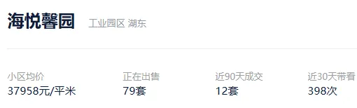 根据贝壳信息显示,海悦馨园目前79套挂牌出售,挂牌均价37958元/平。