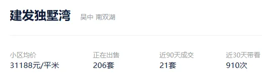 根据贝壳信息显示,建发独墅湾目前206套挂牌出售,挂牌均价31188元/平。