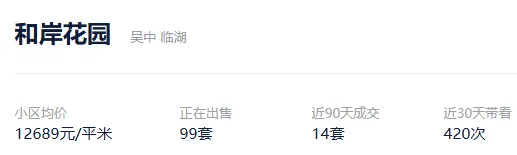 根据贝壳信息显示,和岸花园目前99套挂牌出售,挂牌均价12689元/平。