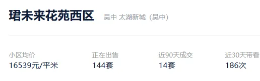 根据贝壳信息显示,珺未来花苑西区目前144套挂牌出售,挂牌均价16539元/平。