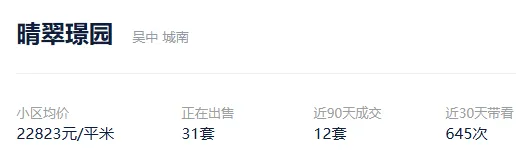 2025年,该社区成交了8套,挂牌均价为22280元/平。