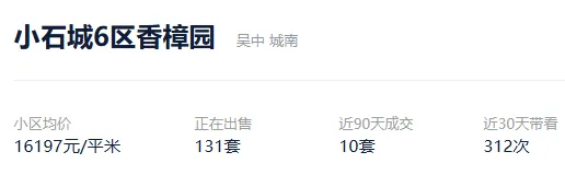 根据贝壳信息显示,小石城6区香樟园目前131套挂牌出售,挂牌均价16197元/平。