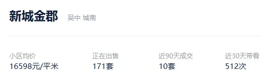 根据贝壳信息显示,新城金郡目前171套挂牌出售,挂牌均价16598元/平。
