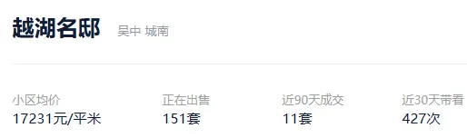 根据贝壳信息显示,越湖名邸目前151套挂牌出售,挂牌均价17231元/平。