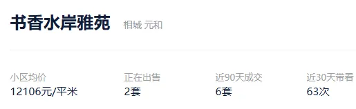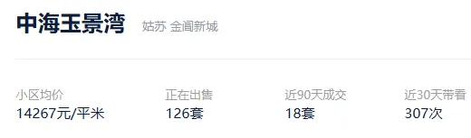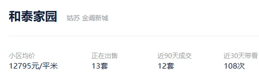 根据贝壳数据显示,今年以来,该社区成交了13套二手住房,套均成交面积96.54平,平均挂牌单套总价120万元,挂牌单价12390元/平,平均成交周期245天。
