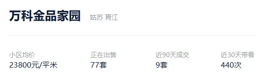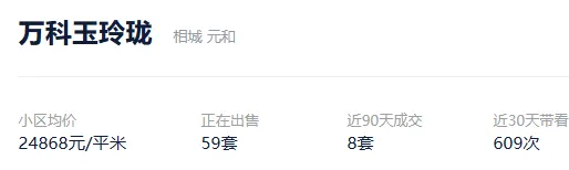 根据贝壳信息显示,万科玉玲珑目前59套挂牌出售,挂牌均价24868元/平。