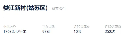 根据贝壳数据显示,今年以来,该社区成交了20套二手住房,套均成交面积73.00平,平均挂牌单套总价113万元,挂牌单价15520元/平,平均成交周期256天。