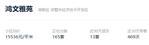 根据贝壳数据显示,今年以来,该社区成交了15套二手住房,套均成交面积76.86平,平均挂牌单套总价139万元,挂牌单价18065元/平,平均成交周期216天。