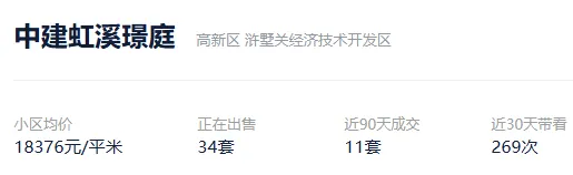 根据贝壳数据显示,今年以来,该社区成交了18套二手住房,套均成交面积92.14平,平均挂牌单套总价129万元,挂牌单价13994元/平,平均成交周期202天。