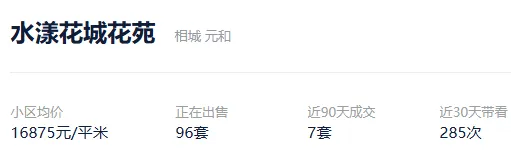 根据贝壳信息显示,水漾花城花苑目前96套挂牌出售,挂牌均价16875元/平。