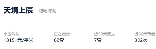 根据贝壳信息显示,天境上辰目前62套挂牌出售,挂牌均价18151元/平。