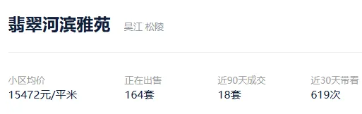 根据贝壳信息显示,翡翠河滨雅苑目前164套挂牌出售,挂牌均价15472元/平。