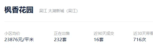 根据贝壳信息显示,枫香花园目前232套挂牌出售,挂牌均价23876元/平。