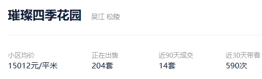 根据贝壳信息显示,璀璨四季花园目前204套挂牌出售,挂牌均价15012元/平。